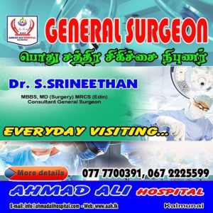 • Address : AHMAD ALI Hospital MAIN                   STREET KALMUNAI
